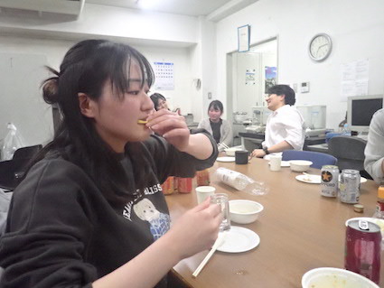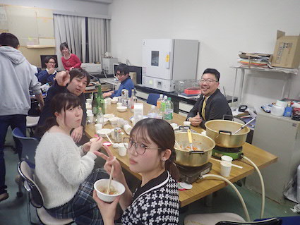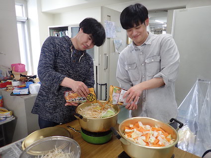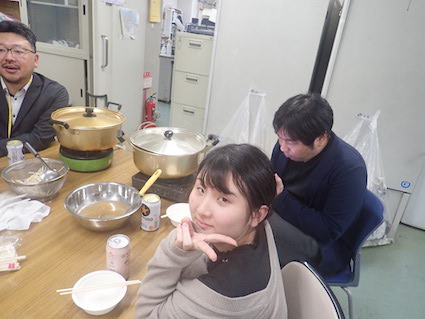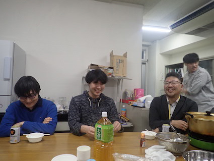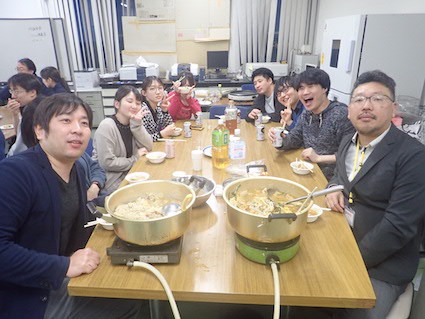 この日の打ち上げのメニューは鍋2種(豚味噌と鳥塩).